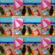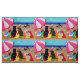 Labrador retriever engraçado no design da pintura da praia. Labrador e o chocolate pretos Labrador e Labrador amarelo todos são pintados na imagem. Os cães felizes e bonitos de labrador retriever estão tendo lotes do divertimento na praia. Cenário colorido e animador do verão com laboratórios. Pintado por Naomi Ochiai de Japão. Presentes de Labrador para os amantes do cão que amam labrador retriever. Grandes presentes do divertimento para o senhor mesmo, demasiado.