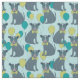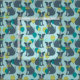 Os cachorrinhos vestidos de óculos e gravatas arcos com balões festivos decoram este tecido de padrão azul claro.