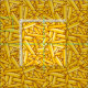 O tecido novidade tinha um padrão de desenho animado com batatas fritas francesas.