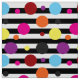 Pontos e listras Polka-pontos Themed Design. Uma mistura de Bolinhas geométricas coloridas e listras pretas e brancas reproduzem o padrão moderno.