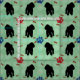 Um poodle de silhueta com uma dispersão de ossos e trilhas de pata. Este design é destinado ao azulejo sem falhas.