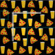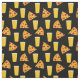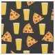 Tecido preto com estampa de pintes de cerveja e fatias de pizza pepperoni