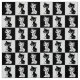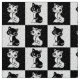 Tecido de padrão de gatinho geométrico com verificação a preto e branco