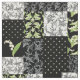 Um tecido chique, com um teste padrão dos retalhos do falso de padrões e de motivos do Lírio---Vale em um fundo preto. Parte "para o amor da coleção fino & Painterly dos lírios".