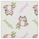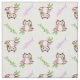 Primavera coruja e nomeie um tecido personalizado de padrão que apresente um animal de pássaro primavera giro, roxo e castanho escuro, segurando uma flor em seu bico (lei) em um galho com folhas verdes e seu nome. Este design modelo personalizável e fofo é excelente para o quarto e o berçário de uma menina. Alguns elementos de Trina Clark.