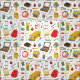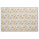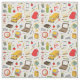 Tecido único com tema escolar apresentando suprimentos de sala de aula e um padrão de ônibus escolar.