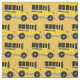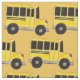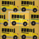 O tecido apresenta uma ilustração original de um ônibus escolar amarelo, impresso em fundo amarelo.