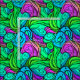 Tecido Psicodélico Retro Padrão Azul Roxo Verde