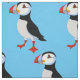 Tecido Puffin Design com cor de fundo personalizável.