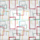 Este tecido moderno do século médio, engraçado, apresenta quadrados e retângulos vermelho escuro, azul claro, verde macio e abstrato amarelo. Ele é destacado por quadrados e retângulos abstrato preto finos. Adicione uma pop de diversão retrógrada ao seu projeto de costura!