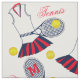No estilo típico de tênis ousado, nós modelamos este vestido original de tênis, raquete e bolas design em amarelo brilhante, vermelho, branco e azul. Basta trocar o texto inicial ou inicial em qualquer um dos campos pelo texto inicial e exclusivo, adicionar ao carrinho e o processo de criação começar em seu tecido exclusivo. design original criado por Designs Holiday Hearts para TJsSportsmania.