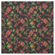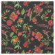 Ilustrações botânicas da safra vermelha de flores e frutas sobre fundo preto.