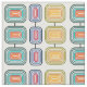 Este tecido tem um design moderno século médio de retângulos concêntricos em cores retrorreflectoras.