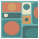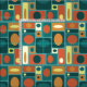 Este padrão de abstrato retroinspirado tem um fundo de turquesa e vários tamanhos de retângulos em amarelo e laranja.