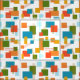 Este tecido tem um design moderno século médio de retângulos e linhas em cores da década de 1970.