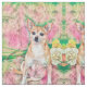 Tecido Retrato de Cachorro Verde Cor-de-Rosa Chinhuahua