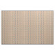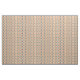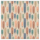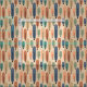 Este tecido tem um design moderno do século médio de longas ovais em cor de pêssego, verde, azul, lacrimogêneo e castanho claro com linhas pretas com círculos nas extremidades.