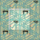 Tecido customizável com ilustrações do vintage do órgão e do registrador + design azul pálido como o fundo. Não esqueça a coleção inteira do tecido com design revisitado do estilo do 50.