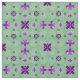 Formas intrincadas espaçadas em fundo azul. O Fleur-de-lis é a forma de âncora deste design. O número clássico de três pontos é equilibrado com um arranjo de estrelas de quatro pontos e floresce. As formas são principalmente roxas. O fundo é um padrão verde.