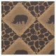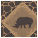 Os quadrados alternos ajustaram-se em uma diagonal de um grupo castanho chocolate profundo da silhueta do rinoceronte em uma forma gramínea do diamante da textura do falso marrom médio limitada no teste padrão das lâminas de grama altas. Teste padrão alterno com um marrom do escuro-chocolate (quase preto) e fundo animal do impressão do girafa tan.