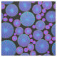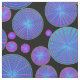Padrão psicodélico em néon. Um design vibrante com rodas grandes e pequenas, redondas, contendo anéis concêntricos com raios. As cores incluem rosa claro vívido, azul-céu, azul-turquesa, violeta e roxo. Tem uma sensação maravilhosa de movimento, movimento e diversão.