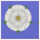 O rosa branco era um de diversos dispositivos a aparecer em crachás e em bandeiras de Yorkist. Esta ilustração original por Richard H. Adaptar é baseada em rosas heráldicos do vário medieval-período.
