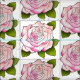 Desenho de linha de um bonito rosa com várias pétalas cor-de-rosa sobre fundo branco. Clique em "Personalizar" para alterar o tamanho da imagem e/ou o padrão do azulejo; se desejar.