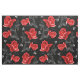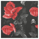 Este design decorativo tem um rosa estilizado de ilustrações antigas, e pequenos crânios. Padrão floral vermelho e preto.
