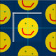 Um amarelo de olhos verdes a sorrir num fundo azul médio. Você pode alterar a cor de fundo. Sinta-se livre para me contactar para receber assistência no redimensionamento do gráfico.