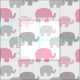 Tecido de elefante de silhueta rosa e cinza. Copyright © Decamp Studios
