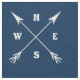 Ilustração de compassagem com setas e decoração norte, leste, sul e oeste sobre fundo azul