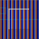 Este design apresenta um padrão listrado com cores como siena, azul de girassol e azul.