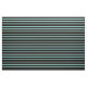 Este design apresenta um padrão de listras com cores como siena, ciano, bege e e preto.