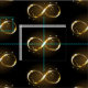 Símbolo infinito de joias Dourado com estrelas douradas sobre fundo preto. Design com estrela dourada.