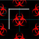 Teste padrão do símbolo de advertência do Biohazard no vermelho e no preto.