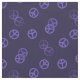 Tecido roxo escuro com um padrão aleatório de sinal de paz.