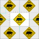 SlipperyJoe's bear sinal de passagem urso silhueta caminhando amarelo como fundo simbolizando força natureza aviso aviso advertência capricho paleta cor amarela preto dourado selvagem aventura arte presentes orgulho gay LGBTQIA