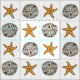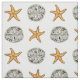 Esta praia com o tema impressão apresenta estrelas e dólares de areia. Excelente para uso em uma casa de praia, decoração de banheiro ou design de cozinha divertida. Altere a cor do plano de fundo ou escolha um tecido diferente apropriado para o seu projeto.