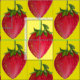 Um design suculento de um grande padrão de fruta vermelho e retro fruta de morango no estilo macro pintado pelo artista de aquarela Sacha Grossel contra um fundo amarelo retroramarelado Este design de fruta-arte é colorido e brilhante e pode ser usado para todos os tipos de ideias de costura para iluminar sua decoração. Perfeito para amantes de fruta em todo lugar! A cor de fundo é totalmente personalizável.