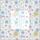 Sol, nuvens com gotas de chuva e estrelas tecido bebê. Copyright © Decamp Studios