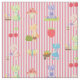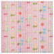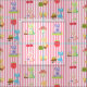 Padrões incluem Sunbonnet Sue no jardim, em fundo listrado de cor rosa e branca.