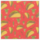 tecido legal impresso com comida desenhada à mão de conchas de taco recheadas, cactos e pimentos pimentões sobre fundo vermelho vivo