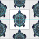 Este movimento repetido de tartaruga marinha foi criado usando um programa de desenho digital, em que eu fiz um padrão de mandala. A casca é composta por diferentes imagens de texturas, como mármores, vidro e conchas, para criar um olhar de joias.