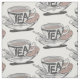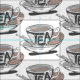 Ilustração de um teacup em um disco de porcelana, com uma panela ou biscoito e uma colher de chá. Uma foto para amantes de chá, desenhada em estilo retrô com meio-tom.