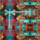 Tecido Teal e Abstrato Laranja