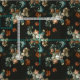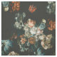 Belo tecido floral escuro, com flores de cereais, ferrugem e pêssego, baseado numa antiga pintura holandesa.