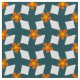 Tecido Teal Orange Floral Grid Poplin Fabric