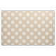 tecido bege com bolinhas brancas.