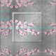 Bonito padrão florescente de cereja rosa em um fundo de cinza cintilante. Os ramos florais do Sakura são organizados em formas geométricas.