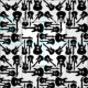 Uma música preta e branca tinha tecido de design com ilustrações de silhueta de guitarra preta sobre um fundo branco.